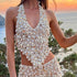 This chic, 2-piece knitted set features a sexy hollow-out design and shimmering sequins that catch the light, making it perfect for beach days or casual summer outings. The halter sleeveless top and mini A-line skirt offer a flattering silhouette that is both stylish and comfortable.